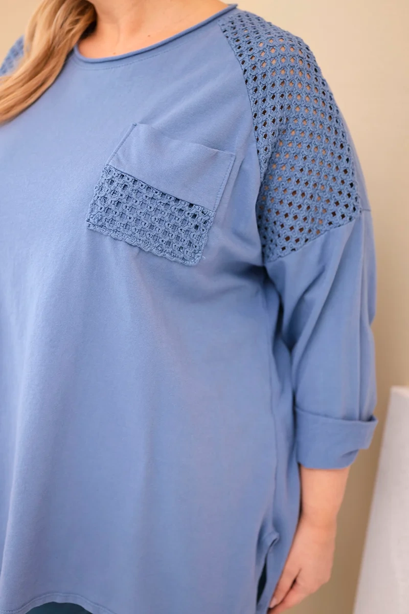 Bluza damska Plus Size bawełniana z nadrukiem jeansowa to idealny wybór dla kobiet, które cenią sobie wygodę i modny wygląd w jednym. Wykonana z wysokiej jakości bawełny z dodatkiem elastanu, zapewnia komfort noszenia oraz swobodę ruchów. Luźny fason świetnie układa się na sylwetce i pozwala zamaskować ewentualne niedoskonałości, a przy tym prezentuje się stylowo i nowocześnie.