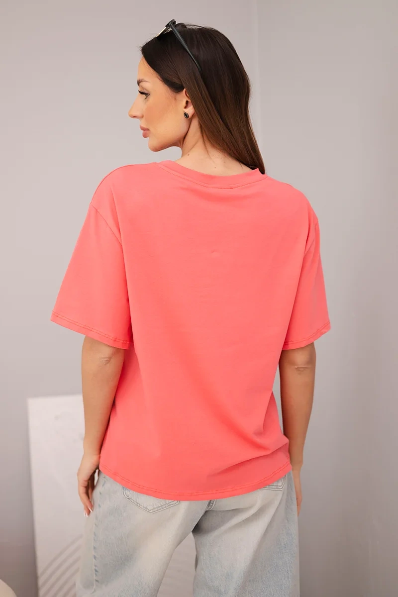 Bluzka damska bawełniana basic z krótkim rękawem malinowa