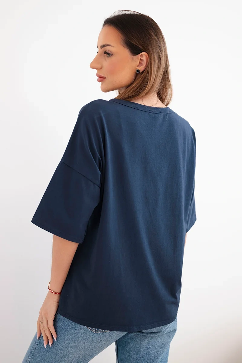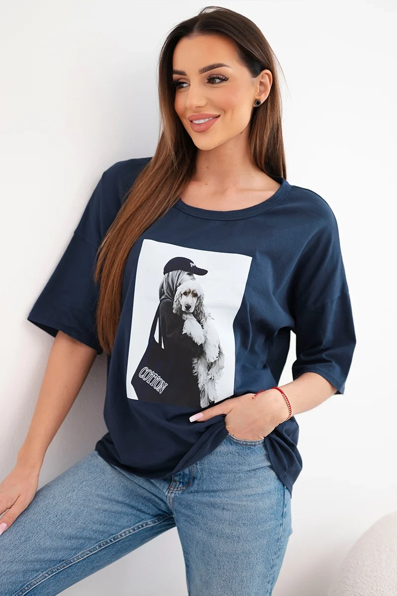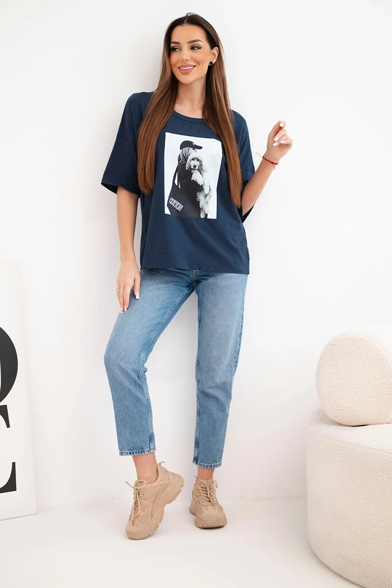Bluzka damska bawełniana o luźnym kroju to doskonały wybór dla kobiet, które cenią wygodę oraz modny styl na co dzień. Model wyróżnia się efektownym nadrukiem z przodu, który nadaje całości nowoczesnego charakteru i sprawia, że bluzka świetnie wpisuje się w casualowe stylizacje. Luźny fason oversize zapewnia komfort noszenia oraz swobodę ruchów przez cały dzień.