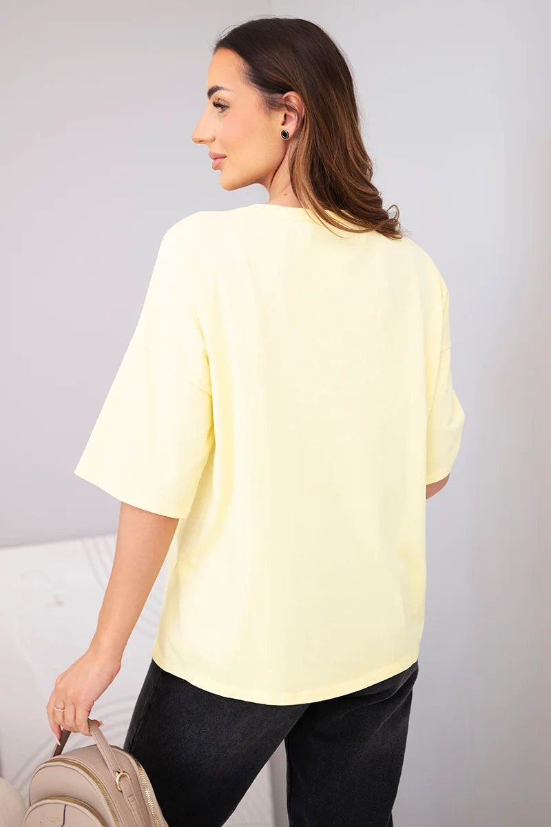 Bluzka damska bawełniana o luźnym fasonie to idealna propozycja dla kobiet ceniących wygodę oraz modny, casualowy styl. Model wyróżnia się efektownym nadrukiem z przodu, który nadaje całości oryginalnego charakteru i przyciąga uwagę. Krój oversize sprawia, że bluzka pięknie układa się na sylwetce, zapewniając swobodę ruchów i komfort przez cały dzień.