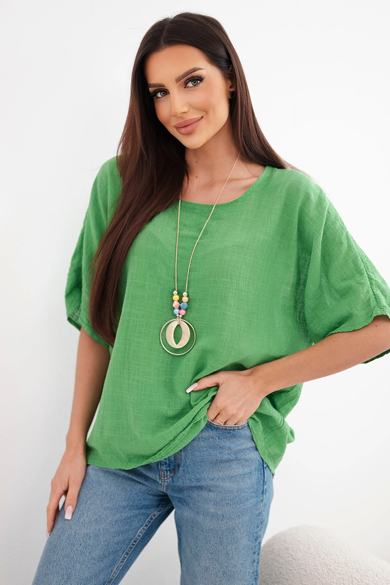 Bluzka damska bawełniana oversize z krótkim rękawem zielona