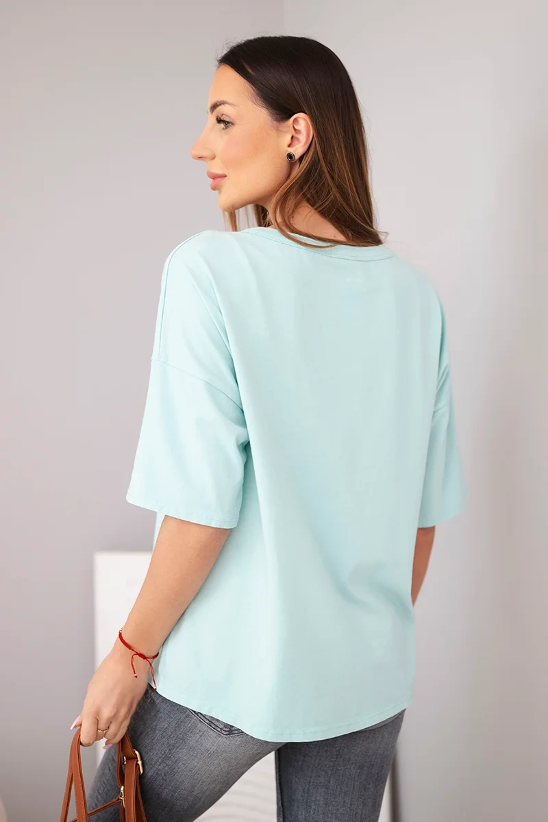Bluzka damska bawełniana oversize z nadrukiem “Dog Fashion” ciemno miętowa