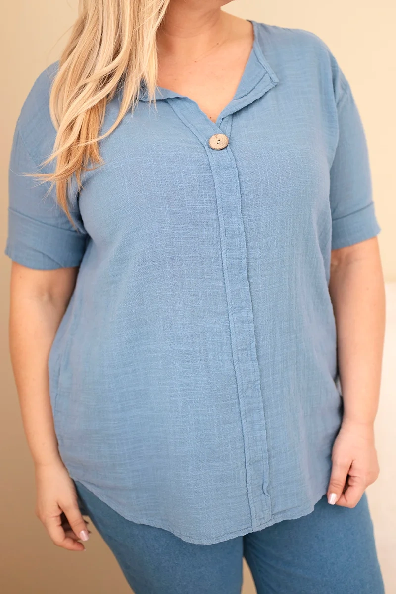 Bluzka damska bawełniana Plus Size z dekoltem na guziki jeansowa Bluzka damska plus size to idealna propozycja dla kobiet ceniących komfort, naturalne materiały oraz ponadczasowy styl. Wykonana w 100% z bawełny, jest lekka, przewiewna i przyjazna dla skóry, dzięki czemu doskonale sprawdzi się w cieplejsze dni. To model, który łączy wygodę z uniwersalnym designem, pasującym do wielu codziennych stylizacji.