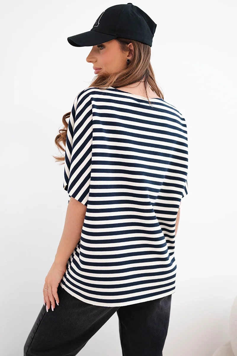 Bluzka damska bawełniana w paski z krótkim rękawem czarna