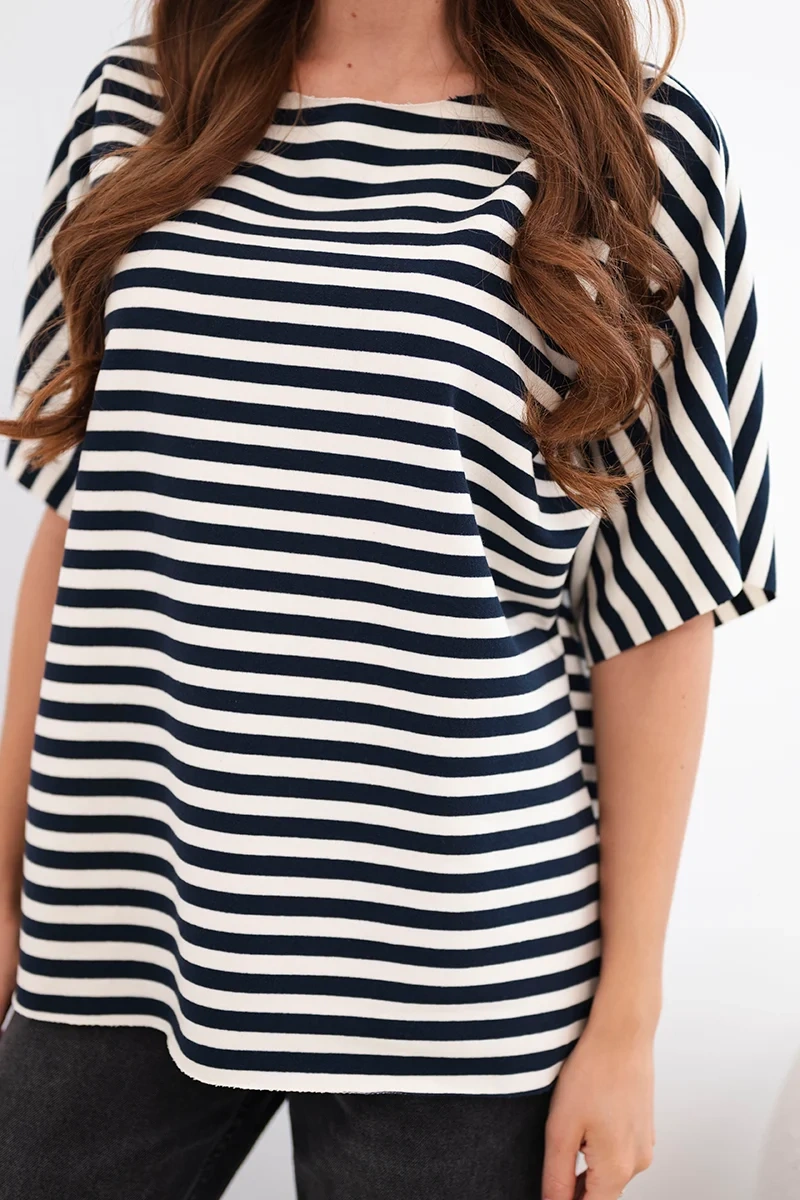 Napisz pierwszą opinię o „Bluzka damska bawełniana w paski z krótkim rękawem czarna”