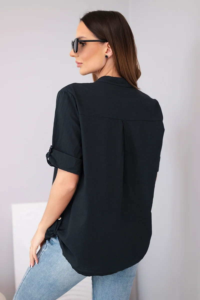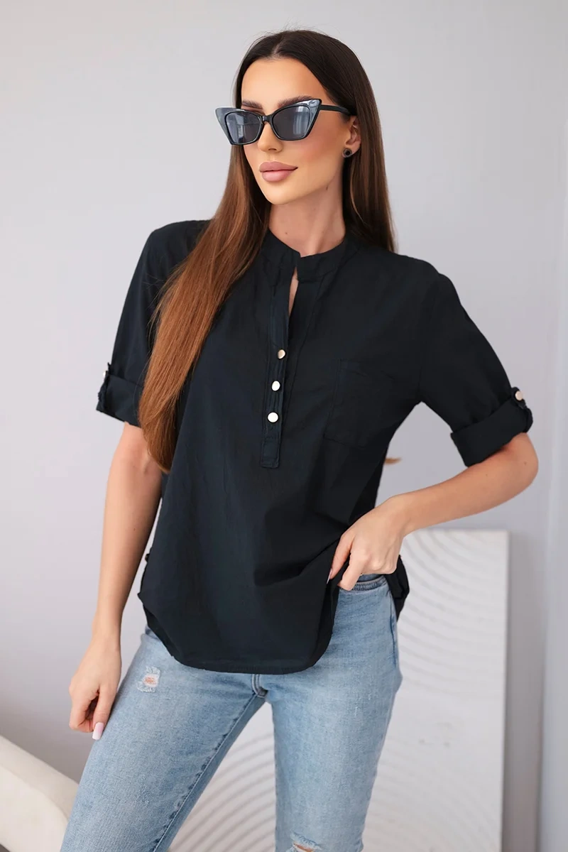 Bluzka damska koszulowa bawełniana z krótkim rękawem i kieszonką czarna