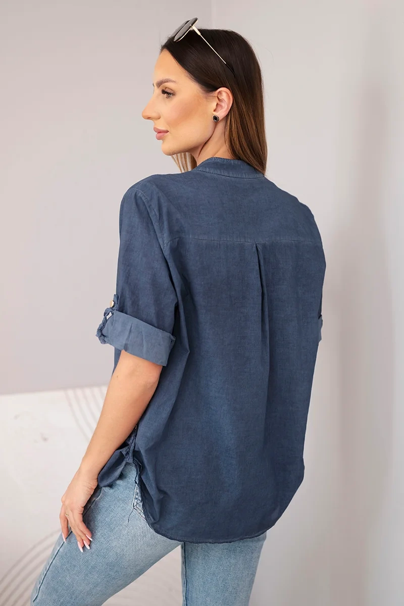 Napisz pierwszą opinię o „Bluzka damska koszulowa bawełniana z krótkim rękawem i kieszonką granatowa”