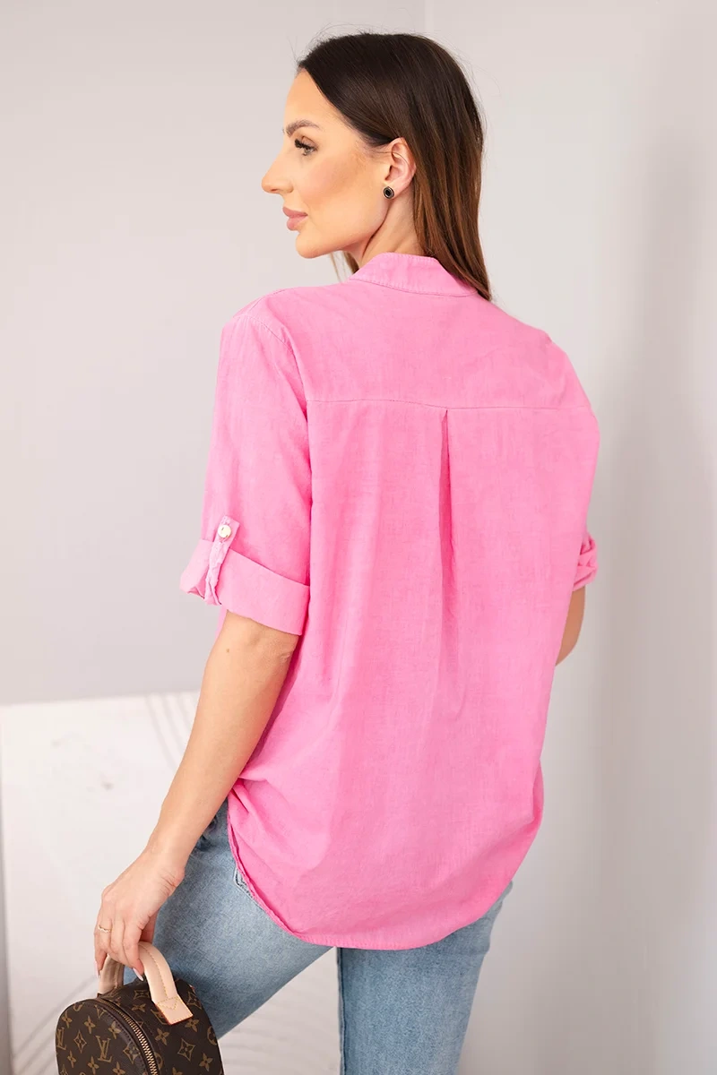 Napisz pierwszą opinię o „Bluzka damska koszulowa bawełniana z krótkim rękawem i kieszonką różowa”