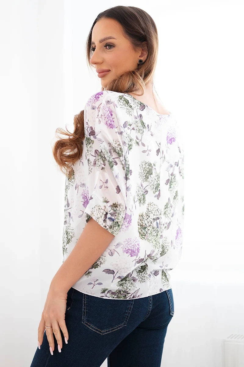 Stylowa bluzka damska o lekkim, zwiewnym fasonie to idealna propozycja na cieplejsze dni oraz eleganckie stylizacje. Wykonana z delikatnego szyfonowego materiału, pięknie układa się na sylwetce, zapewniając komfort i swobodę ruchów. Kwiatowy wzór nadaje jej kobiecego uroku i świeżości, dzięki czemu świetnie wpisuje się w aktualne trendy.