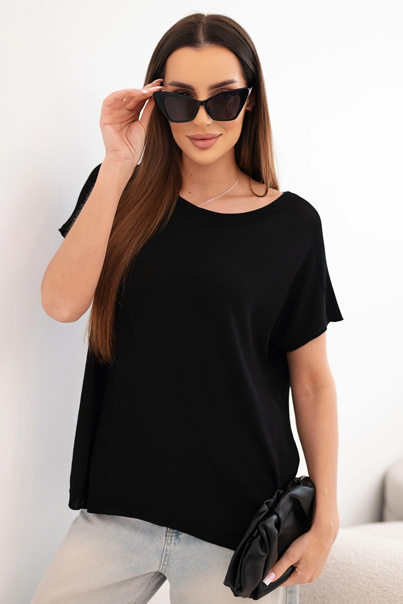 Bluzka damska wiskozowa oversize z krótkim rękawem i okrągłym dekoltem czarna
