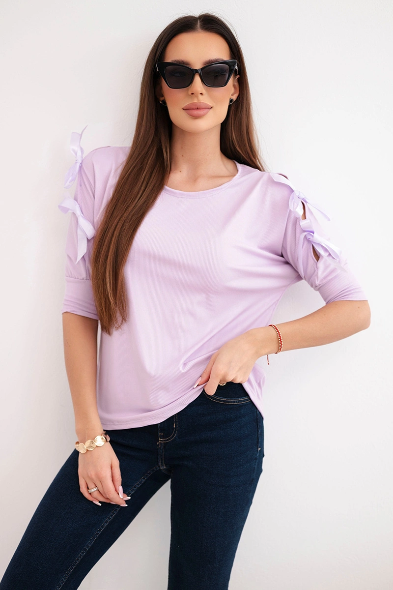 Bluzka damska wiskozowa z ozdobnymi wstążkami jasno fioletowa