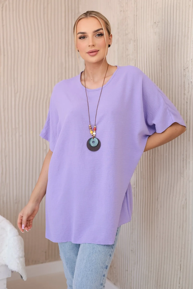Bluzka oversize z wisiorkiem jasno fioletowa