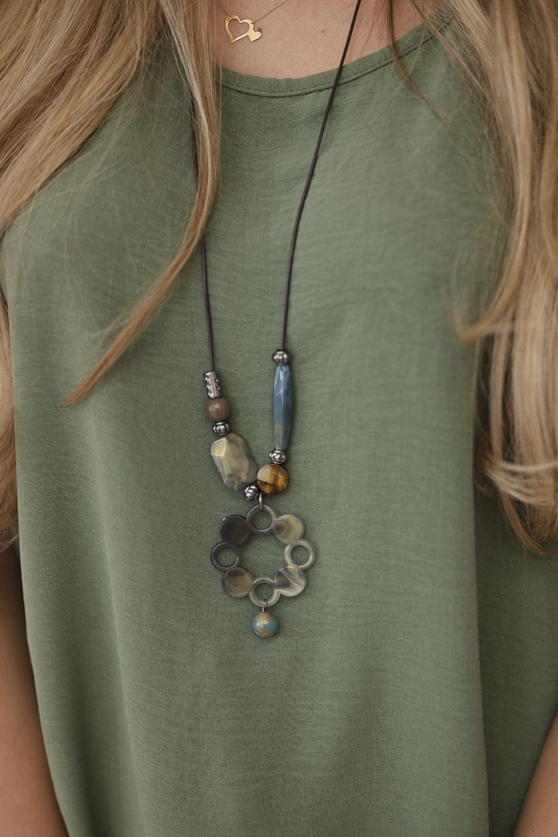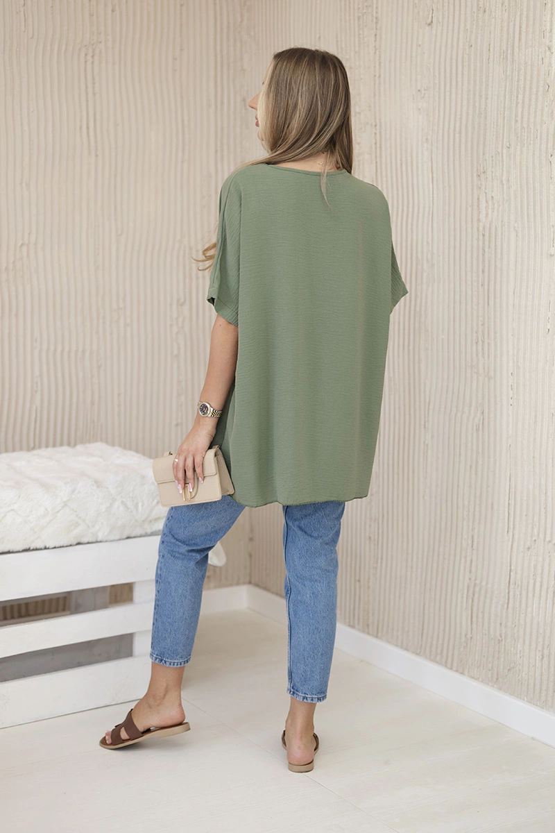 Bluzka oversize z wisiorkiem jasny khaki