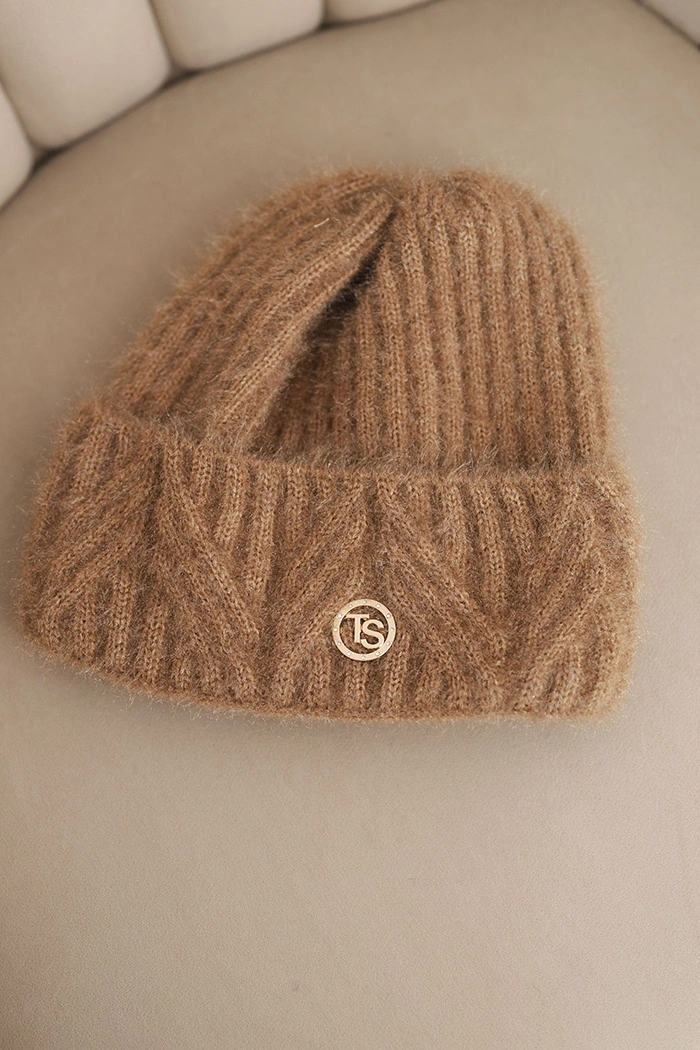 Czapka damska zimowa z puszystej dzianiny i z eleganckim guzikiem camelowa Stylowa czapka damska zimowa wykonana z miękkiej, puszystej dzianiny idealnie sprawdzi się podczas chłodniejszych dni. Klasyczny fason z wywinięciem świetnie dopasowuje się do głowy, zapewniając komfort noszenia i odpowiednie ciepło.
