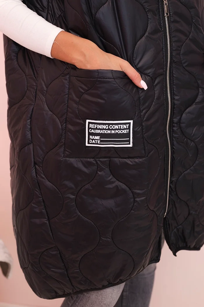 Kamizelka damska pikowana Plus Size z kapturem zapinana na zamek czarna