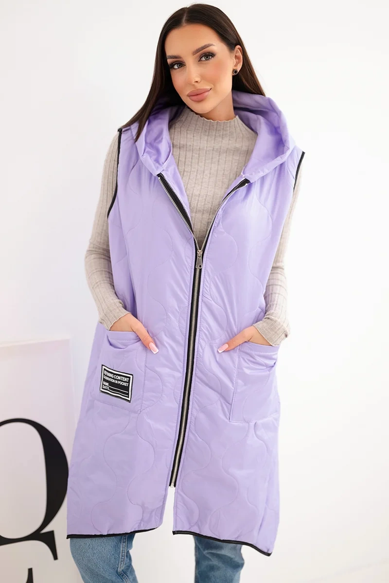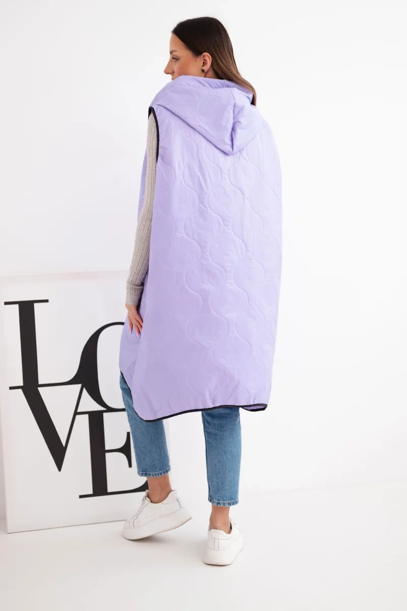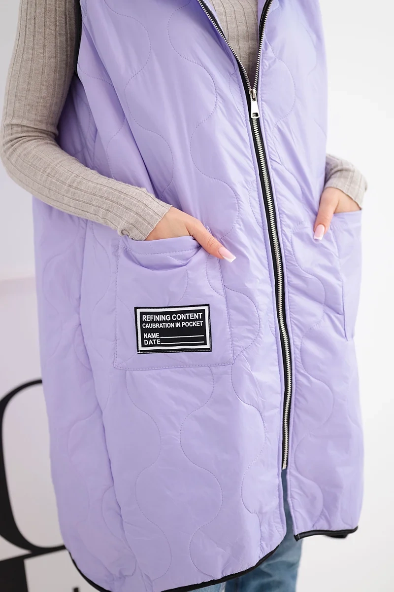 Kamizelka damska pikowana Plus Size z kapturem zapinana na zamek jasno fioletowa to idealna propozycja na chłodniejsze dni. Dzięki praktycznemu kapturowi oraz wygodnemu zapięciu na zamek sprawdzi się zarówno w miejskich stylizacjach, jak i podczas spacerów. Model ma modny, geometryczny wzór pikowania, który dodaje całości charakteru, a długość sięgająca za biodra świetnie modeluje sylwetkę. Obszerne kieszenie z przodu zwiększają funkcjonalność, a ozdobna naszywka dodaje sportowego stylu. Ta kamizelka to połączenie wygody i stylu – wykonana z lekkiego, ale trwałego materiału, idealna do noszenia przez cały sezon przejściowy. Można ją zestawić z legginsami, jeansami lub sportową sukienką, tworząc modne, warstwowe stylizacje. Rozmiar jest uniwersalny i będzie odpowiedni dla Pań w rozmiarze L, XL, XXL.