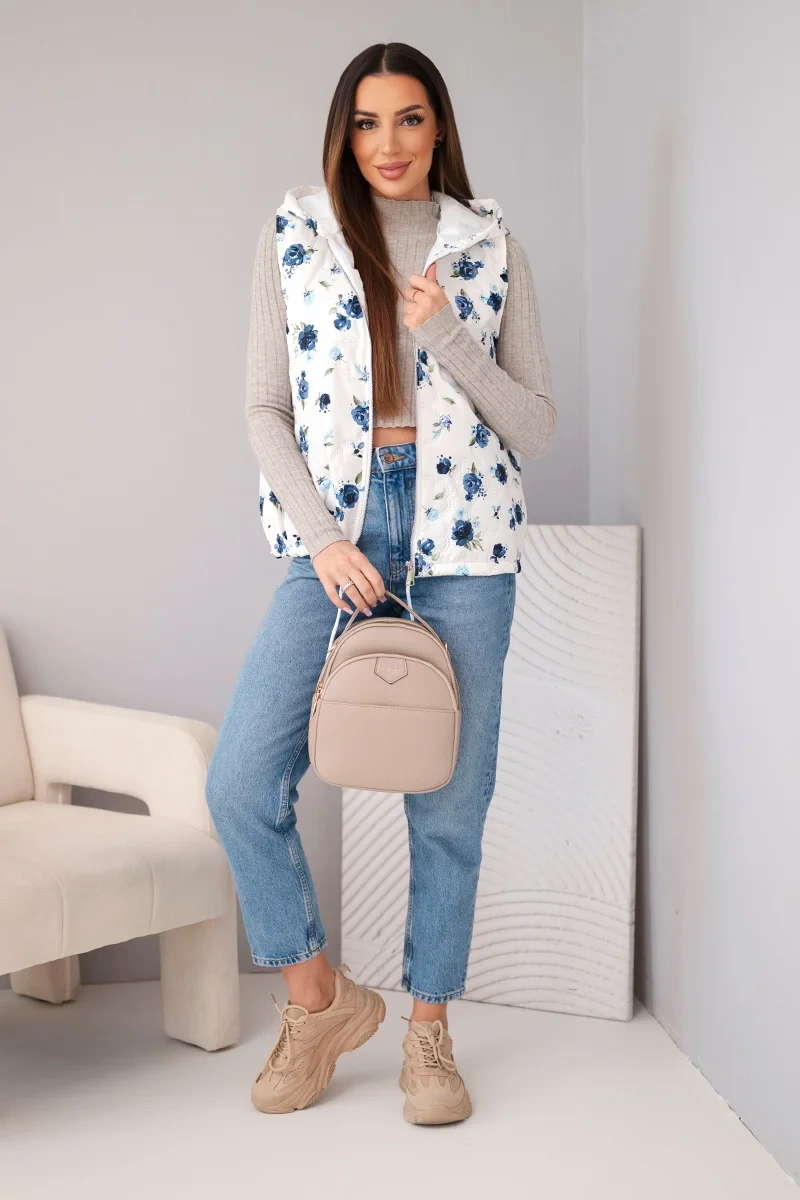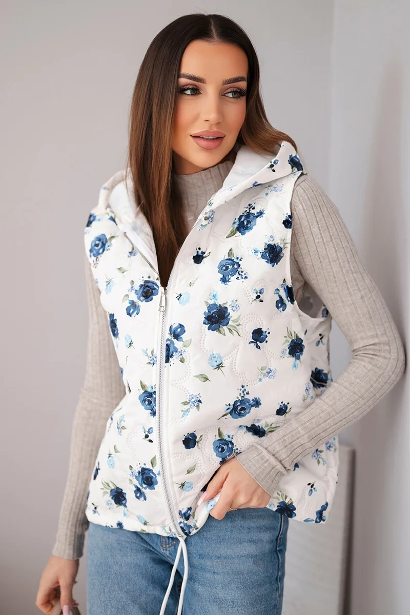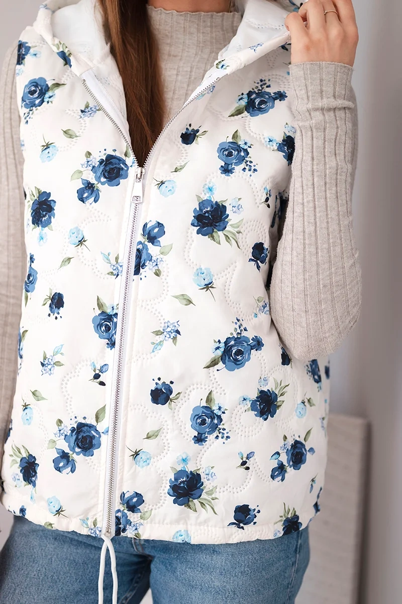 Kamizelka damska pikowana w kwiaty z kapturem granatowa
