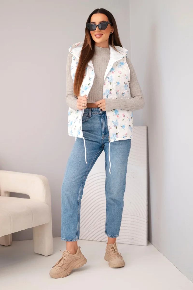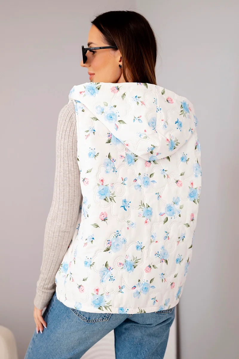 Modna i wygodna kamizelka damska to doskonała propozycja dla kobiet ceniących styl oraz komfort noszenia. Pikowany materiał nadaje jej nowoczesnego wyglądu, a subtelny kwiatowy wzór sprawia, że model prezentuje się bardzo kobieco i świeżo. To idealny element garderoby na wiosnę, jesień oraz chłodniejsze letnie dni, kiedy potrzebujesz lekkiego, ale praktycznego okrycia.