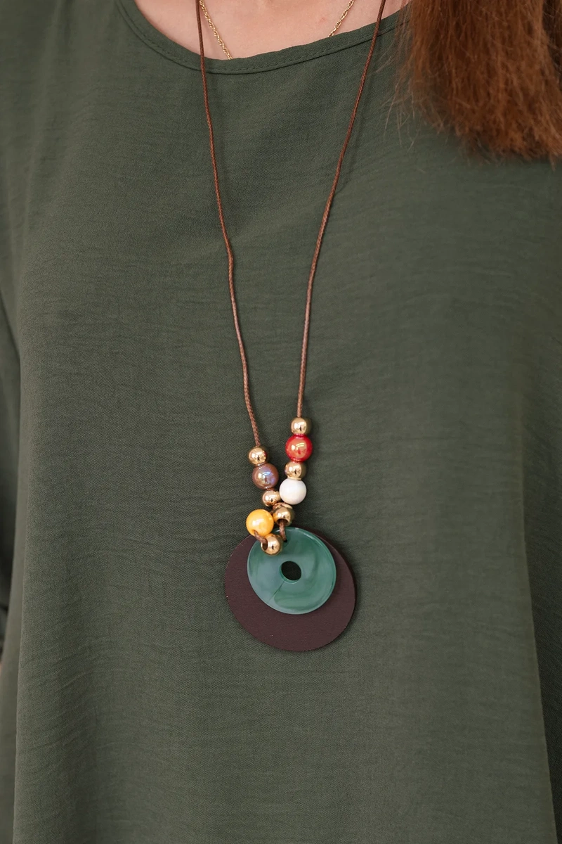• Komplet bluzka + spodnie z wisiorkiem ciemny khaki