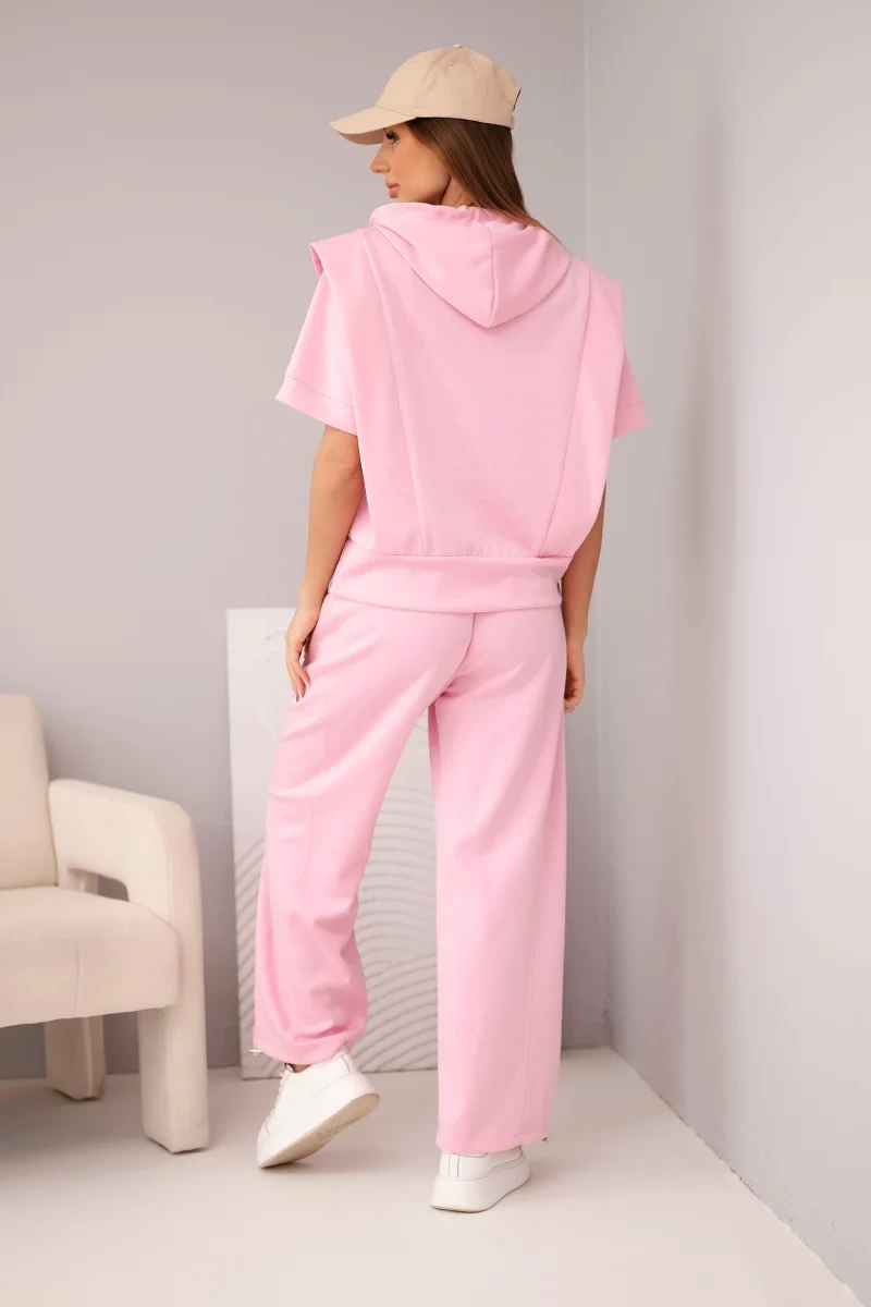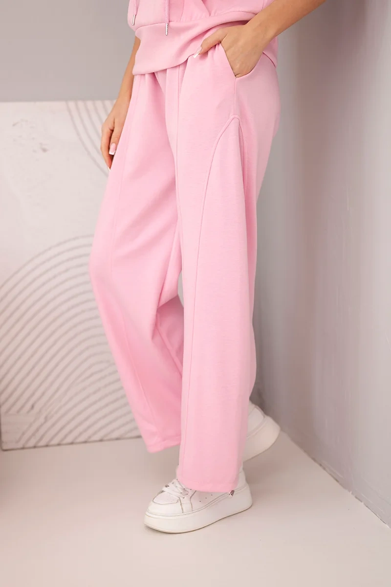 Komplet damski masełkowy bluza z kapturem i luźne spodnie z wiązaniem cukierkowy róż Stylowy i wygodny komplet damski to doskonała propozycja dla kobiet ceniących komfort oraz modny, sportowy look. Zestaw składa się z bluzy damskiej z krótkim rękawem i praktycznym kapturem oraz spodni z szeroką nogawką i elastycznym pasem. Całość tworzy spójny, nowoczesny komplet idealny na co dzień, spacer, zakupy czy spotkanie z przyjaciółmi. Produkcja Włoska gwarantuje wysoką jakość wykonania oraz dbałość o detale.