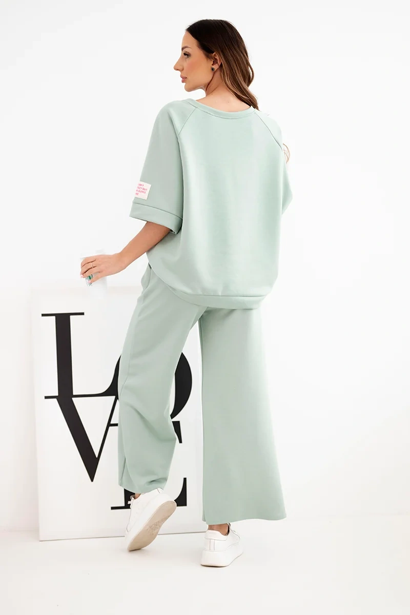 Komplet damski masełkowy z wiskozy bluza i szerokie spodnie ciemno miętowy Stylowy komplet damski masełkowy to doskonała propozycja dla kobiet ceniących wygodę i modny, minimalistyczny styl. Zestaw składa się z luźnej bluzy oraz szerokich spodni z elastycznym pasem, które zapewniają pełną swobodę ruchów i komfort przez cały dzień.