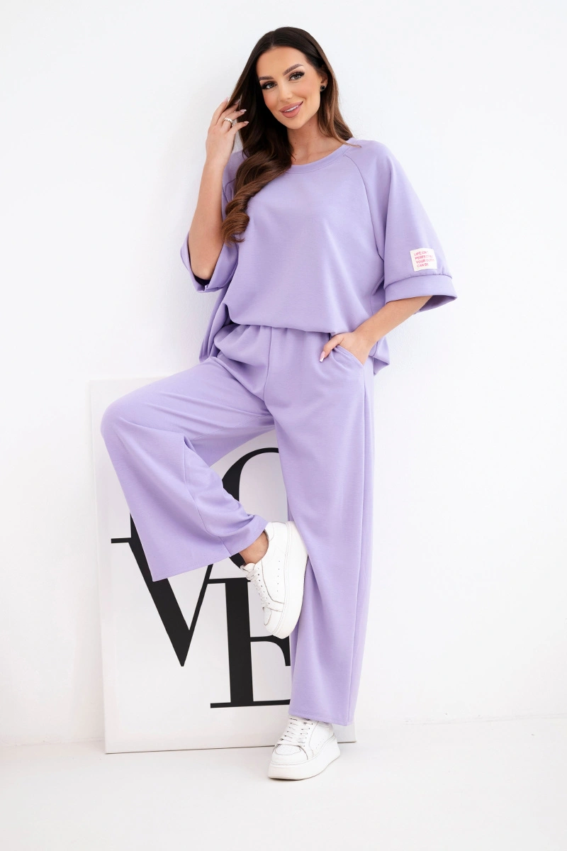 Komplet damski masełkowy z wiskozy bluza i szerokie spodnie jasno fioletowy