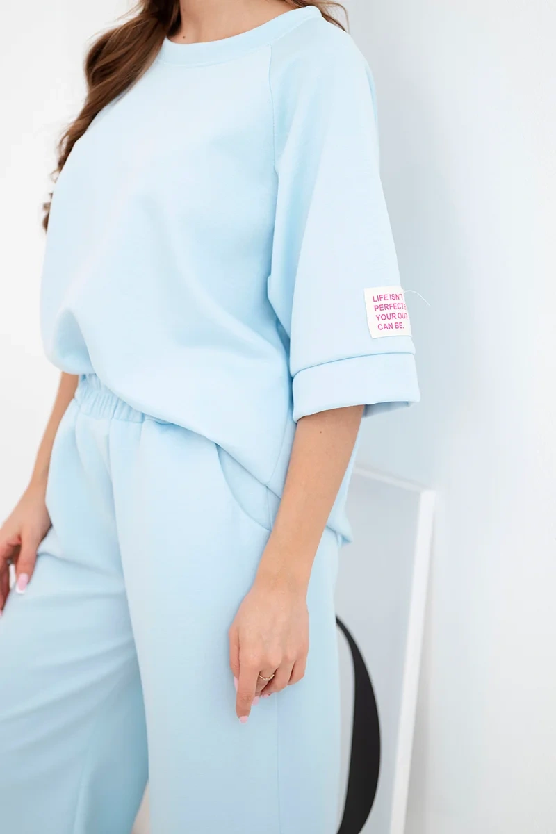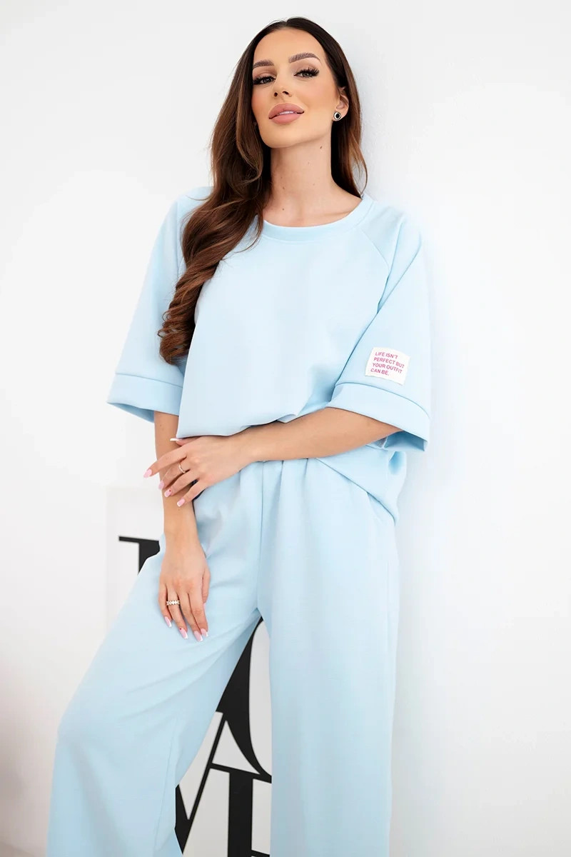 Komplet damski masełkowy z wiskozy bluza i szerokie spodnie niebieski Stylowy komplet damski masełkowy to doskonała propozycja dla kobiet ceniących wygodę i modny, minimalistyczny styl. Zestaw składa się z luźnej bluzy oraz szerokich spodni z elastycznym pasem, które zapewniają pełną swobodę ruchów i komfort przez cały dzień.