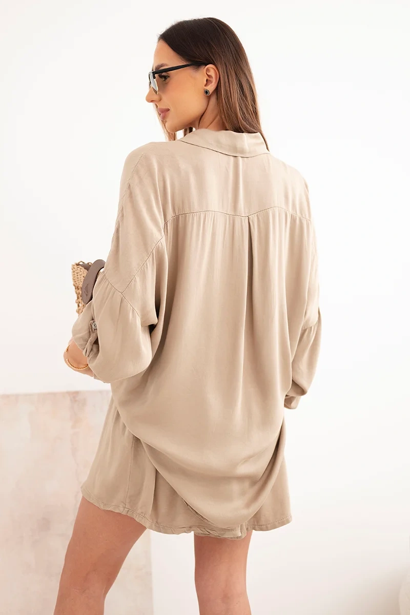 Komplet damski wiskozowy koszula z guzikami i luźne spodenki camelowy