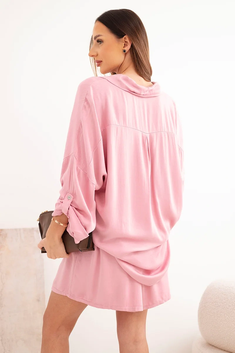 Komplet damski wiskozowy koszula z guzikami i luźne spodenki ciemno różowy
