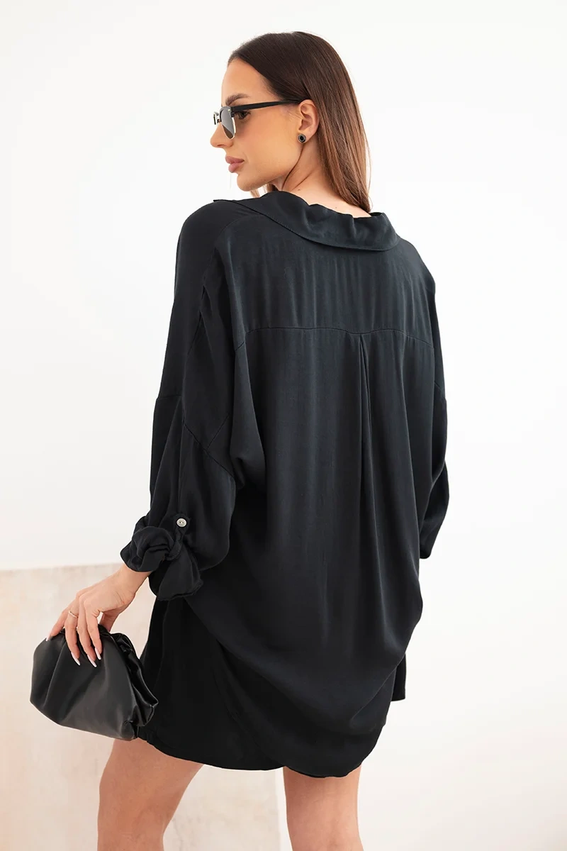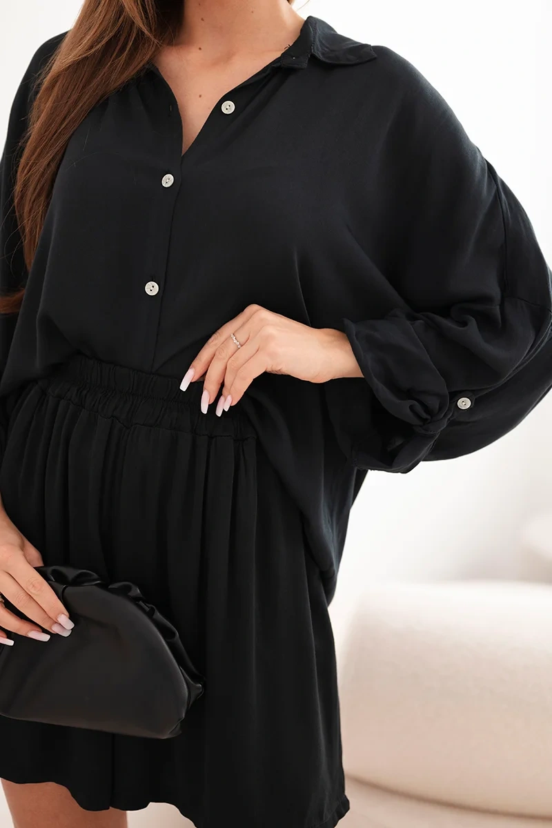 Komplet damski wiskozowy koszula z guzikami i luźne spodenki czarny