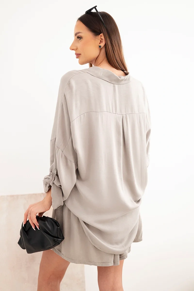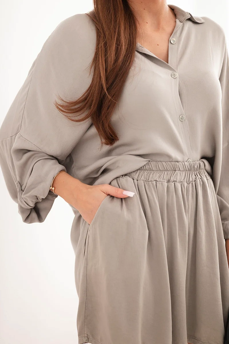 Komplet damski wiskozowy koszula z guzikami i luźne spodenki fango