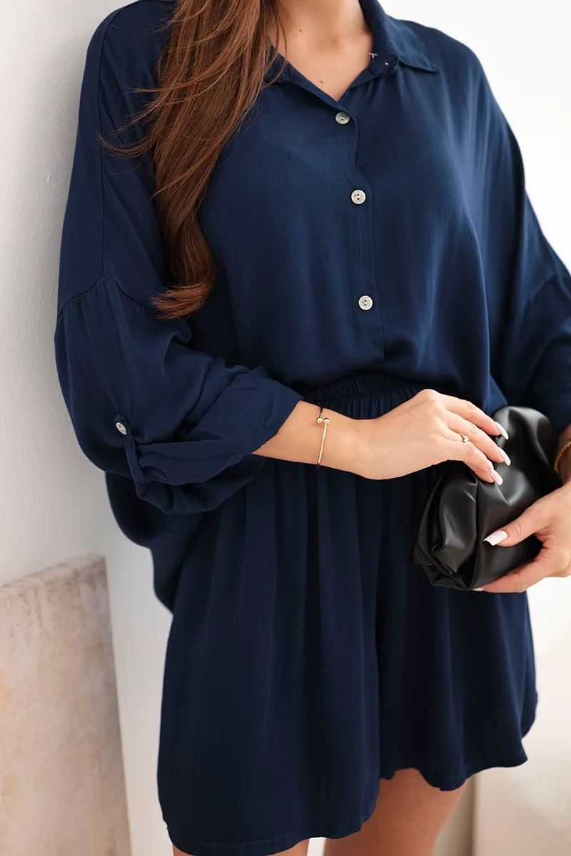 Komplet damski wiskozowy koszula z guzikami i luźne spodenki granatowy