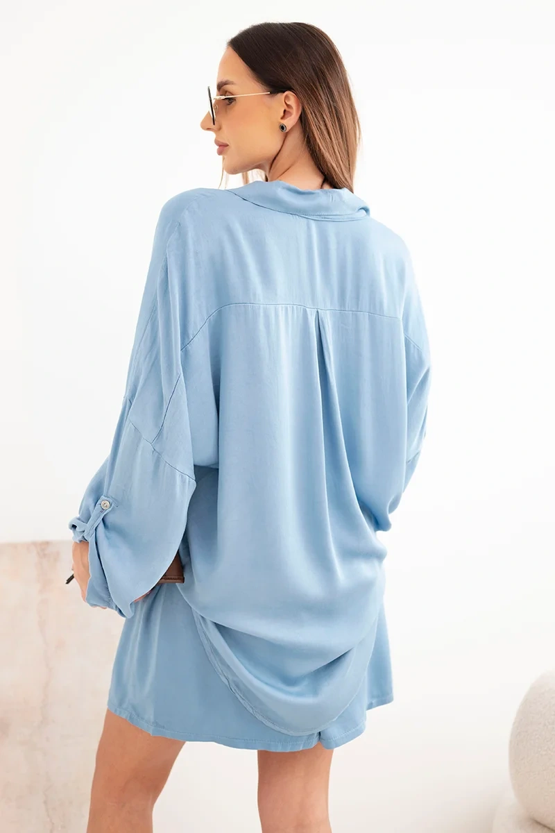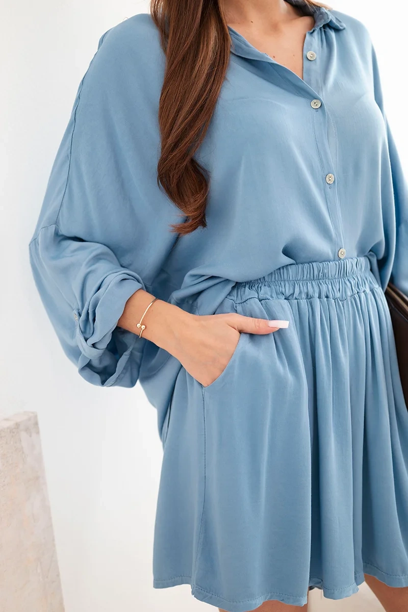 Komplet damski wiskozowy koszula z guzikami i luźne spodenki jeansowy