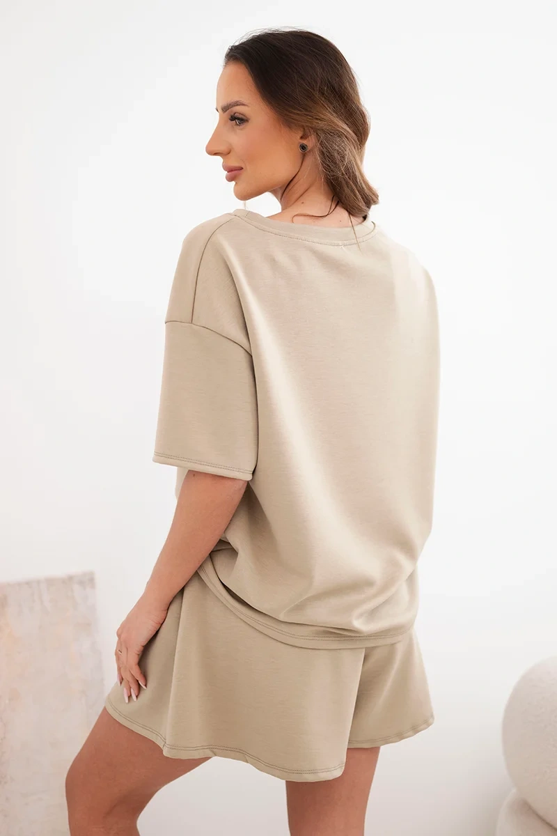Komplet damski wiskozowy masełko z krótkim rękawem i spodenki z wysokim stanem camelowy