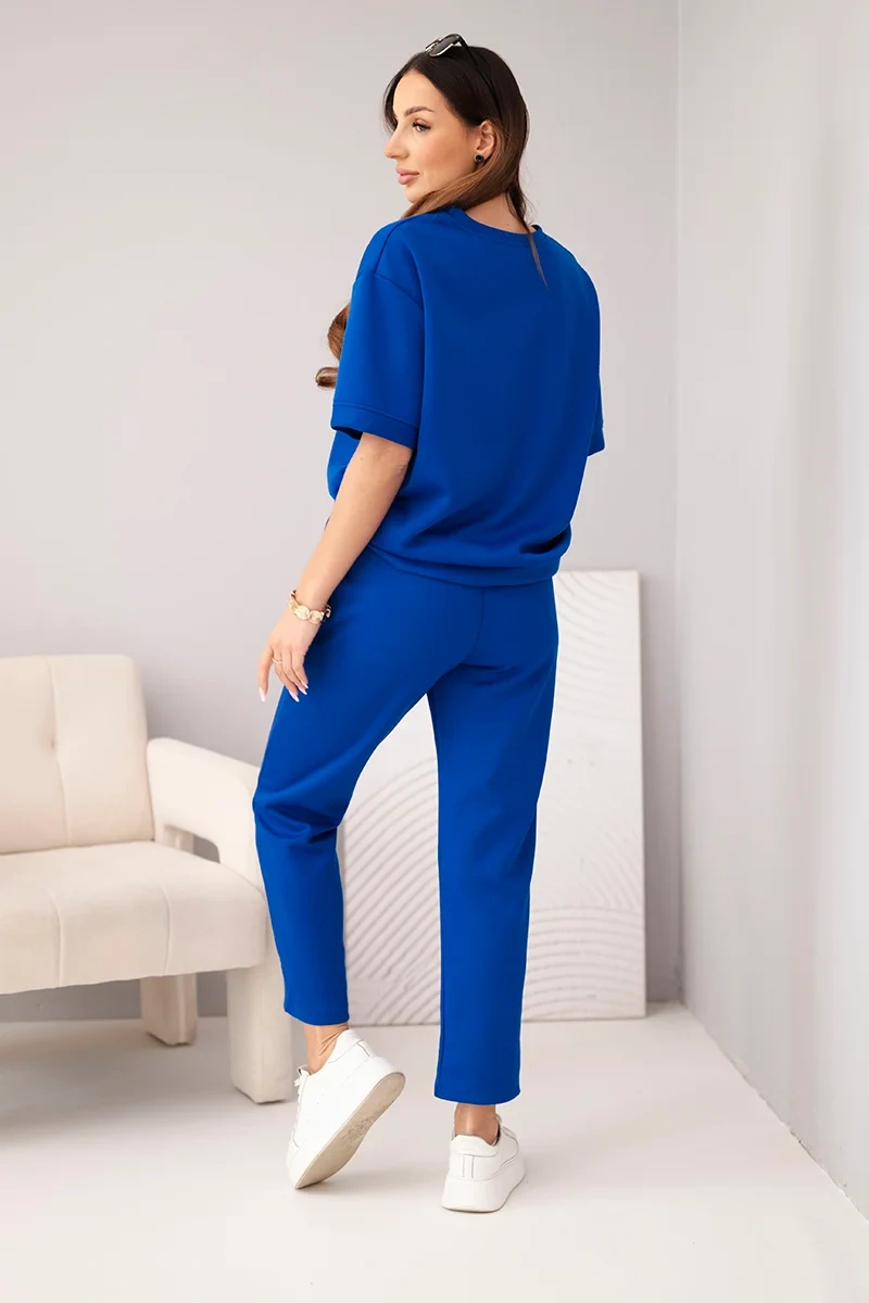 Komplet damski wiskozowy masełko z krótkim rękawem i spodniami z podwijaną nogawką chabrowy Stylowy komplet damski to doskonała propozycja dla kobiet, które cenią wygodę oraz modny, minimalistyczny styl. Zestaw składa się z luźnej bluzki z krótkim rękawem oraz komfortowych spodni z elastycznym pasem. To idealny komplet damski na co dzień – sprawdzi się zarówno podczas spaceru, zakupów, jak i w domowym zaciszu.