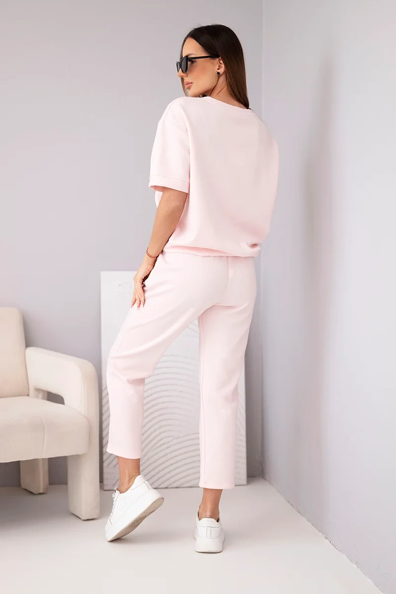 Komplet damski wiskozowy masełko z krótkim rękawem i spodniami z podwijaną nogawką cukierkowy róż Stylowy komplet damski to doskonała propozycja dla kobiet, które cenią wygodę oraz modny, minimalistyczny styl. Zestaw składa się z luźnej bluzki z krótkim rękawem oraz komfortowych spodni z elastycznym pasem. To idealny komplet damski na co dzień – sprawdzi się zarówno podczas spaceru, zakupów, jak i w domowym zaciszu.