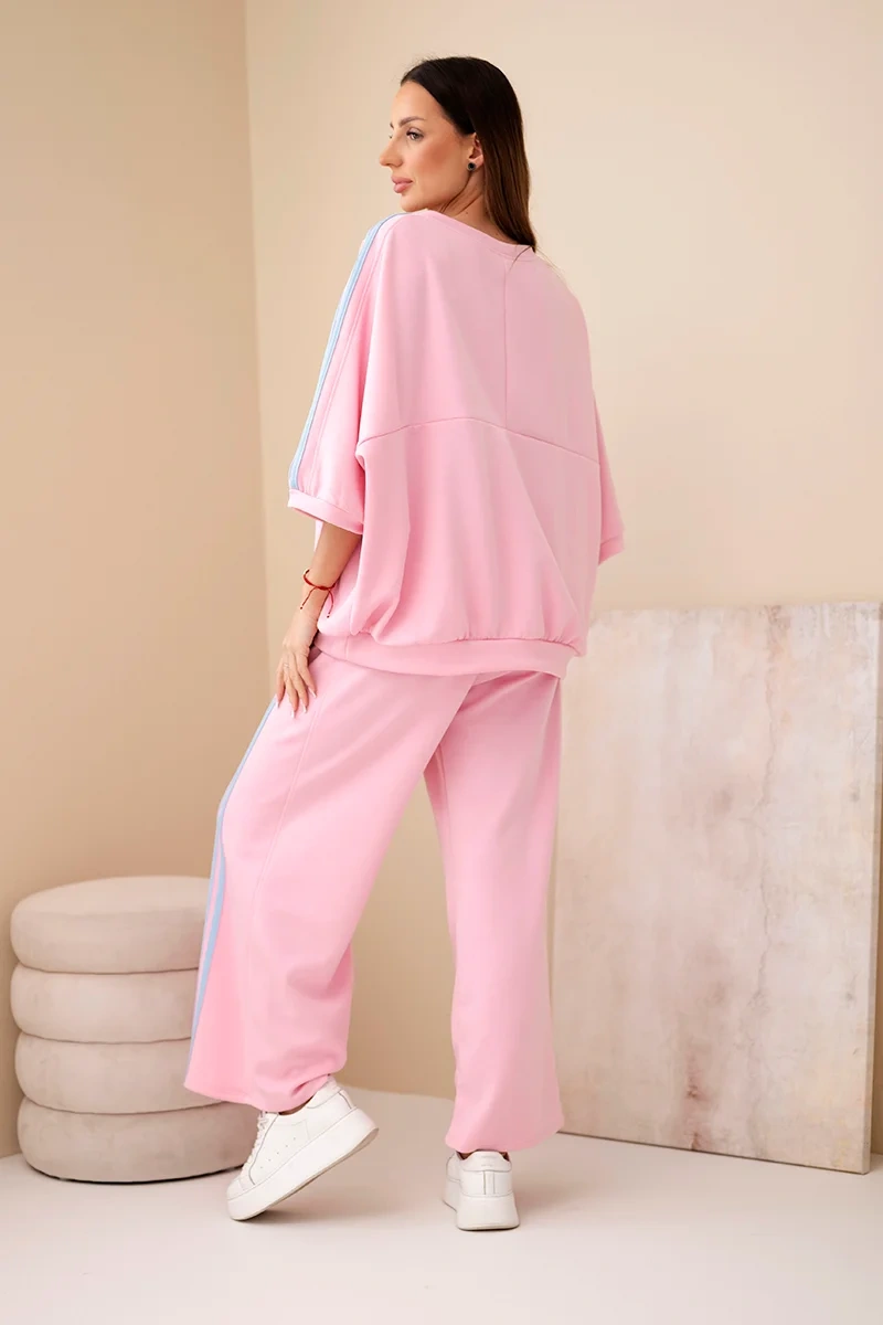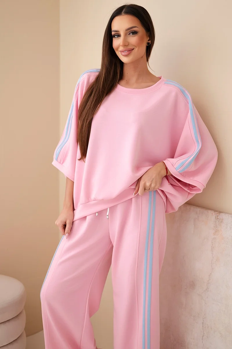 Komplet damski wiskozowy masełko z szeroką nogawką i luźną bluzą jasno różowy Stylowy komplet damski dresowy to idealna propozycja dla kobiet, które cenią wygodę, modny wygląd i swobodę ruchów. Zestaw składa się z luźnej bluzy o oversize’owym kroju oraz spodni z szeroką nogawką, które pięknie układają się na sylwetce i nadają całości nowoczesnego charakteru. To doskonały wybór zarówno na co dzień, jak i na wyjazd, spacer czy relaks w domowym zaciszu.