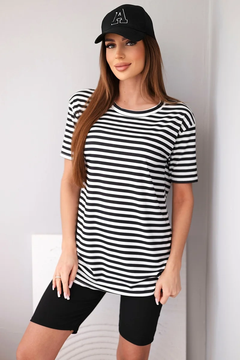 Napisz pierwszą opinię o „Komplet damski wiskozowy w paski z krótkim rękawem i spodenkami czarny”