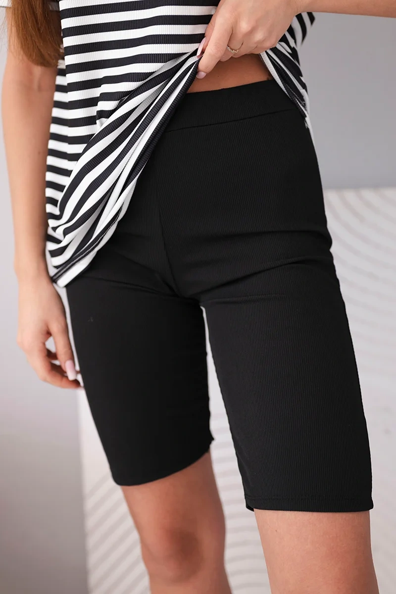 Komplet damski wiskozowy w paski z krótkim rękawem i spodenkami czarny