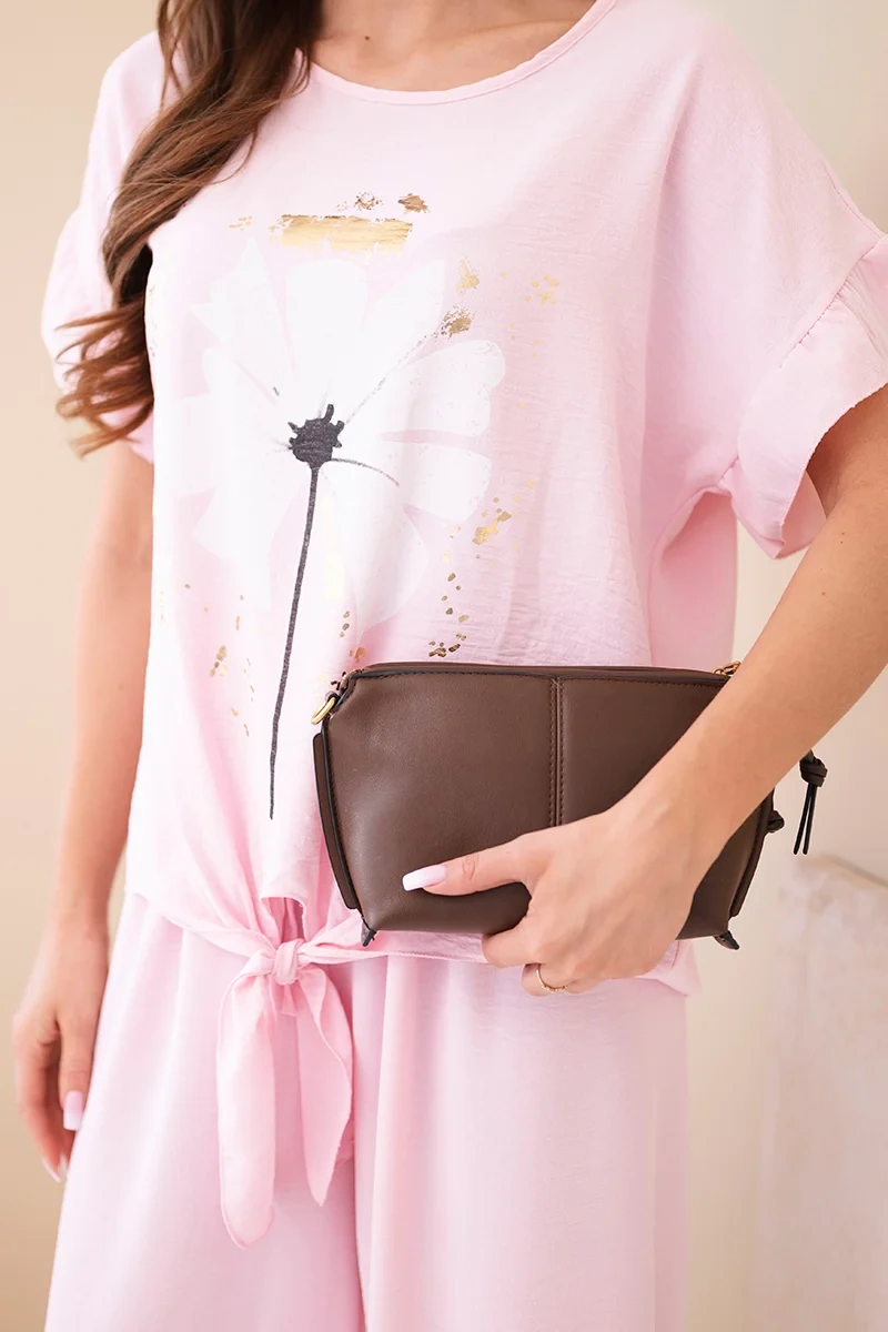Komplet damski wiskozowy z bluzką z nadrukiem i spodniami cukierkowy róż