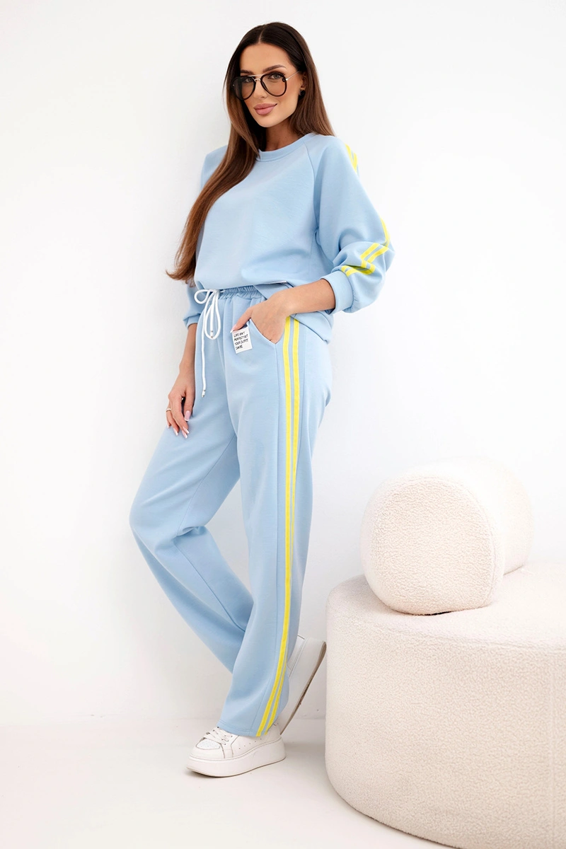 Komplet dresowy damski Masełko z lampasami i luźną bluzą niebieski