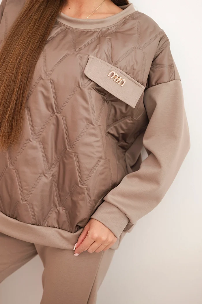 Komplet dresowy damski z wiskozy z pikowaną bluzą i spodniami fango