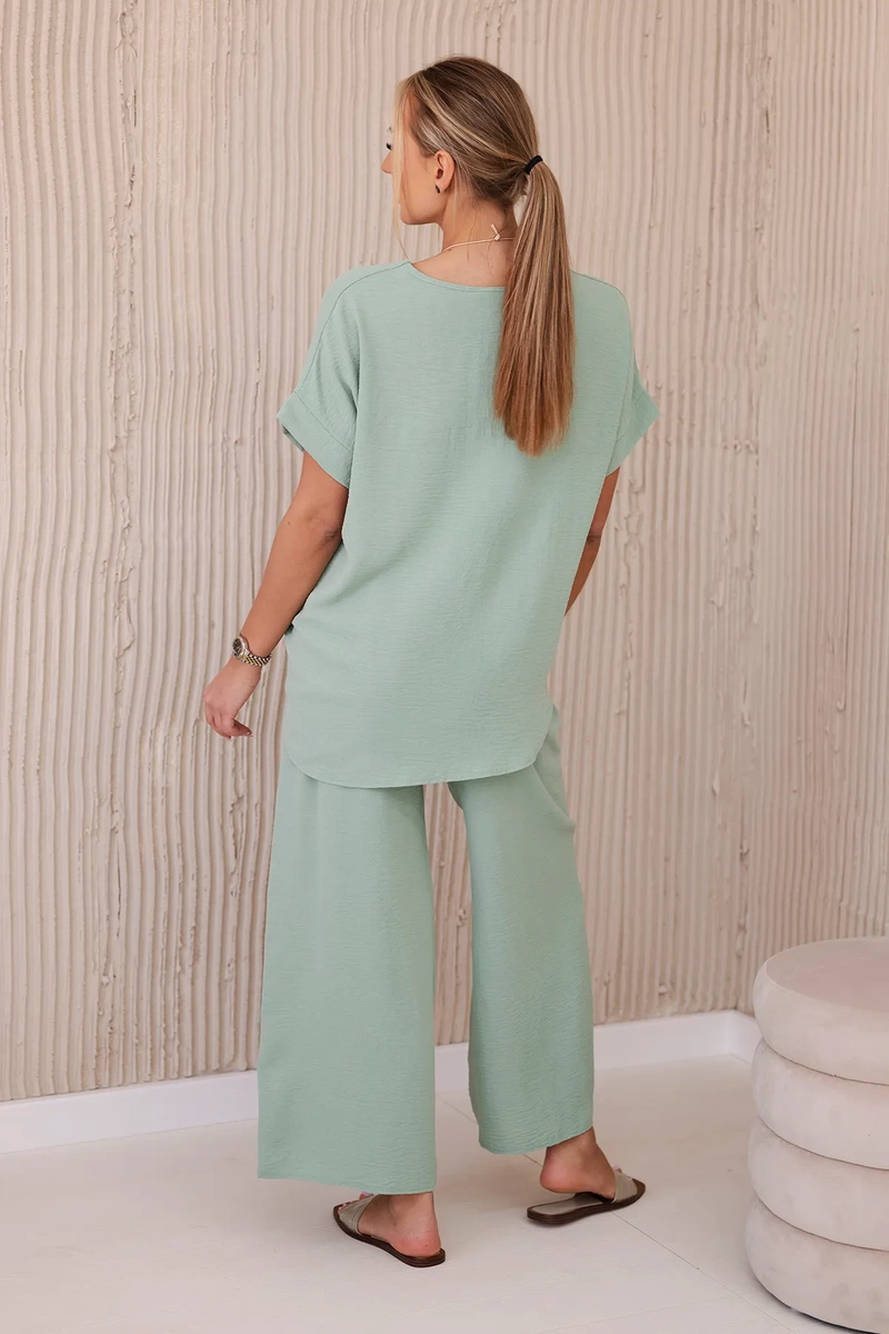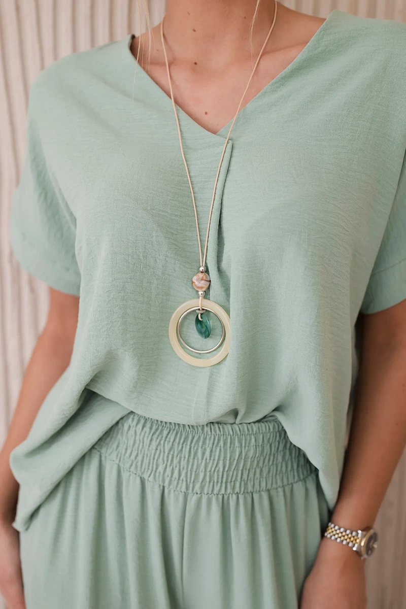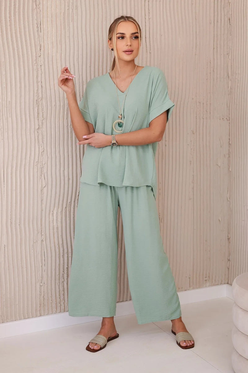 • Komplet z naszyjnikiem bluzka + spodnie miętowy