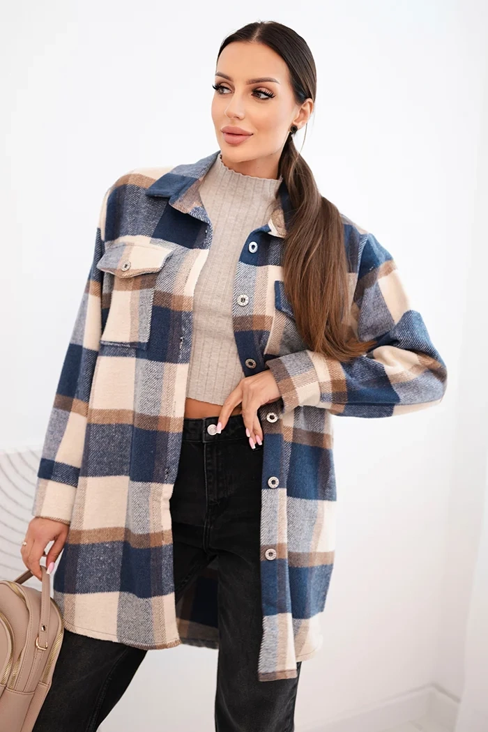Koszula damska w kratę jeansowa to idealny wybór na chłodniejsze dni. Wyróżnia się luźnym, dłuższym krojem, który zapewnia wygodę i swobodę ruchów, a jednocześnie nadaje stylizacji modowego charakteru. Z powodzeniem zastąpi lekką kurtkę lub narzutkę, świetnie sprawdzi się zarówno do jeansów, jak i legginsów.