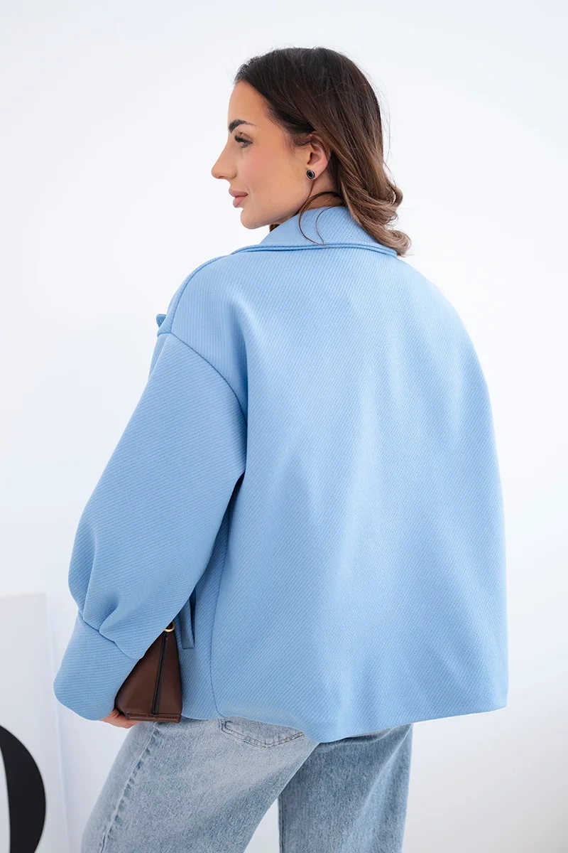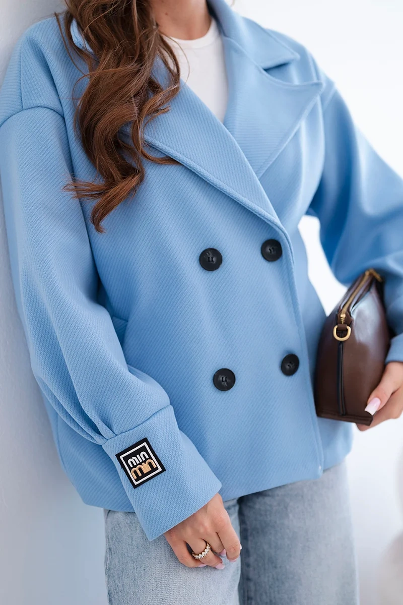 Kurtka damska krótka dwurzędowa z kołnierzem niebieska