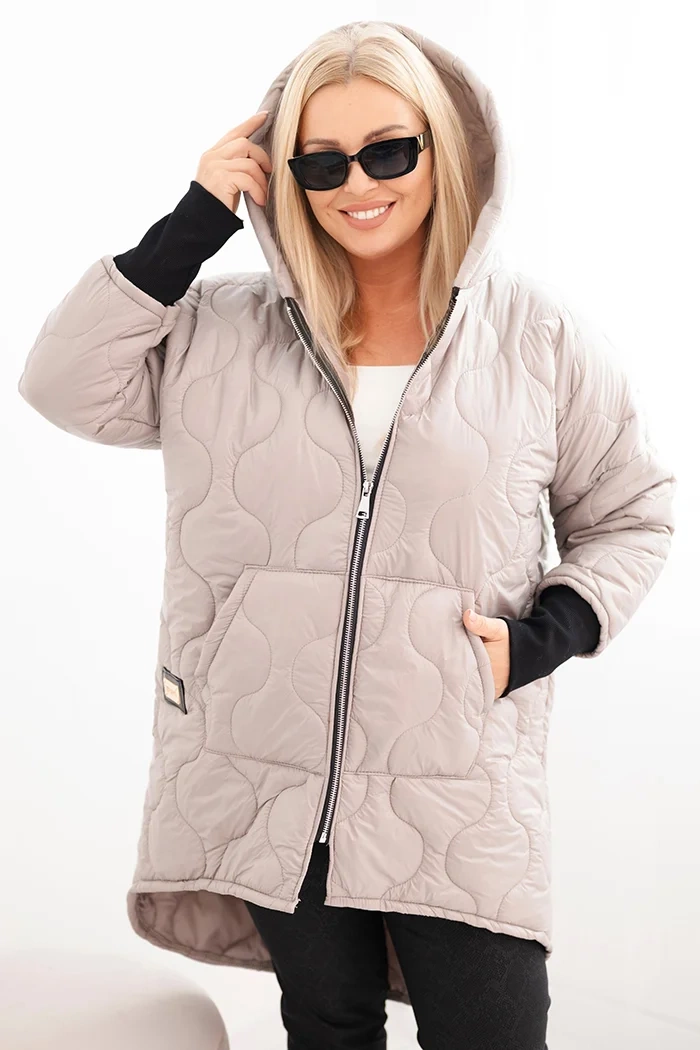 Kurtka damska Plus Size pikowana z kapturem ciemno beżowa