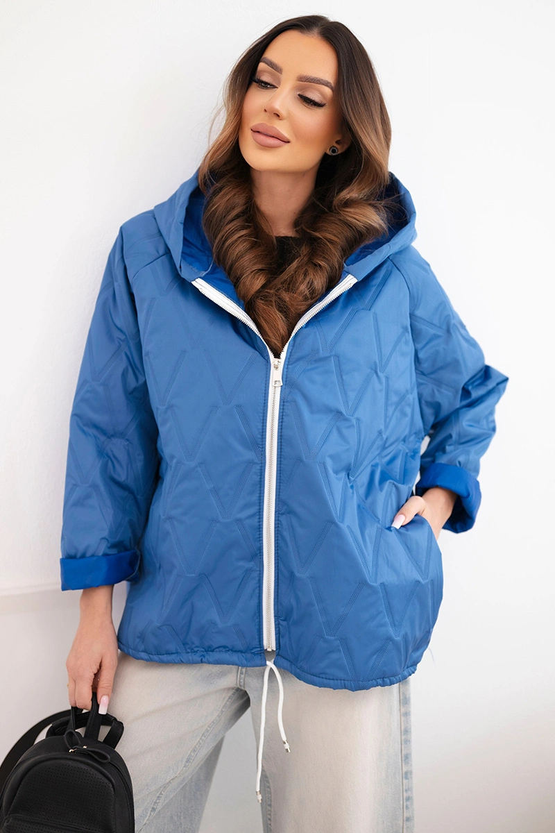Kurtka damska wiosenna pikowana z kapturem i zamkiem ciemno jeansowa