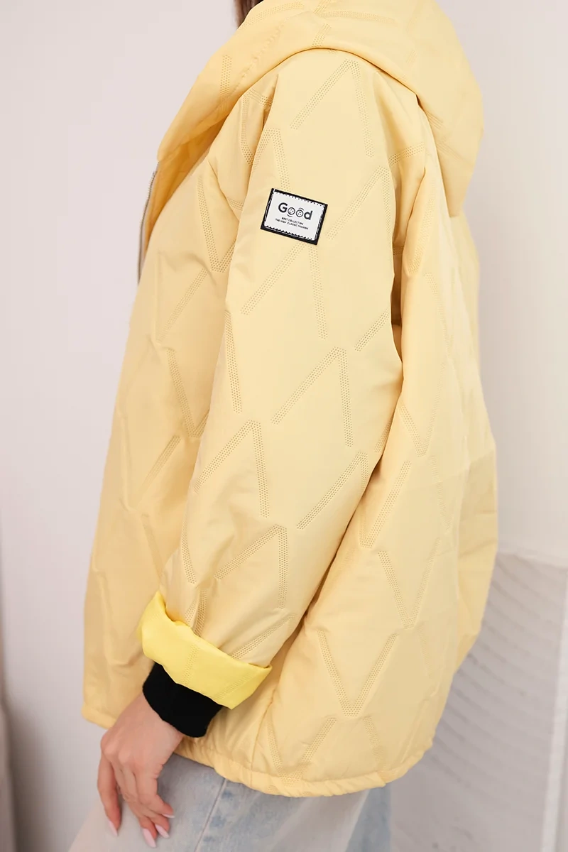 Kurtka damska wiosenna pikowana z kapturem i zamkiem żółta Szukasz idealnej kurtki na przejściowe dni? Ta damska kurtka pikowana z kapturem to doskonały wybór dla kobiet, które cenią sobie styl, wygodę i funkcjonalność. Wykonana z lekkiego materiału, zapewnia komfort noszenia i ochronę przed chłodem, nie obciążając sylwetki. Nowoczesny pikowany wzór w geometryczny motyw dodaje całości modnego charakteru, a luźny krój sprawia, że kurtka świetnie leży na każdej figurze.