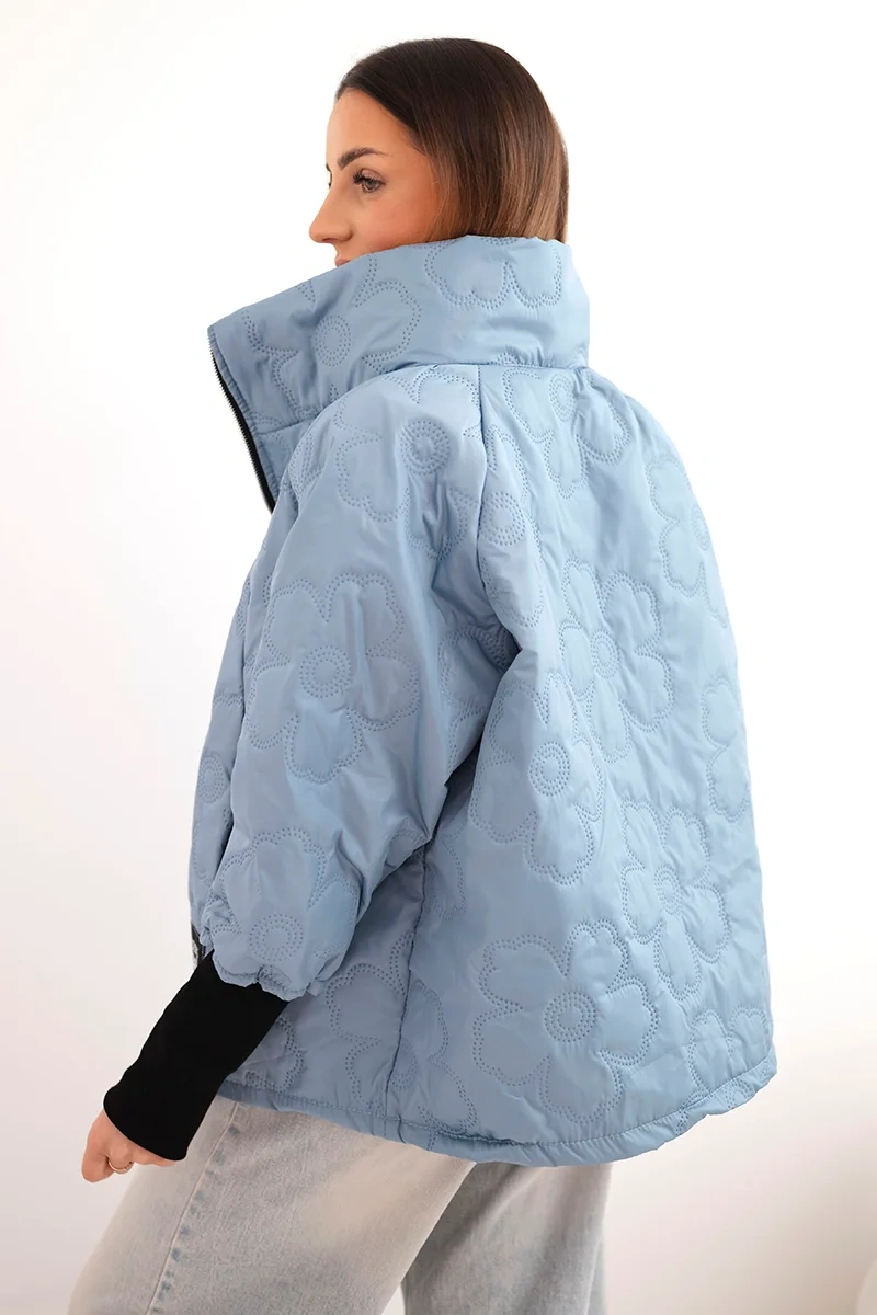 Kurtka damska wiosenna pikowana z ozdobnym tłoczeniem i zamkiem jeansowa stylowa kurtka damska o modnym, pikowanym wykończeniu to doskonały wybór dla kobiet, które cenią komfort oraz nowoczesny wygląd. Charakterystyczne tłoczenie w kształcie kwiatów nadaje kurtce wyjątkowego charakteru i sprawia, że wyróżnia się na tle klasycznych modeli. Krótszy fason sprawia, że kurtka świetnie układa się na sylwetce i doskonale sprawdzi się w codziennych stylizacjach.