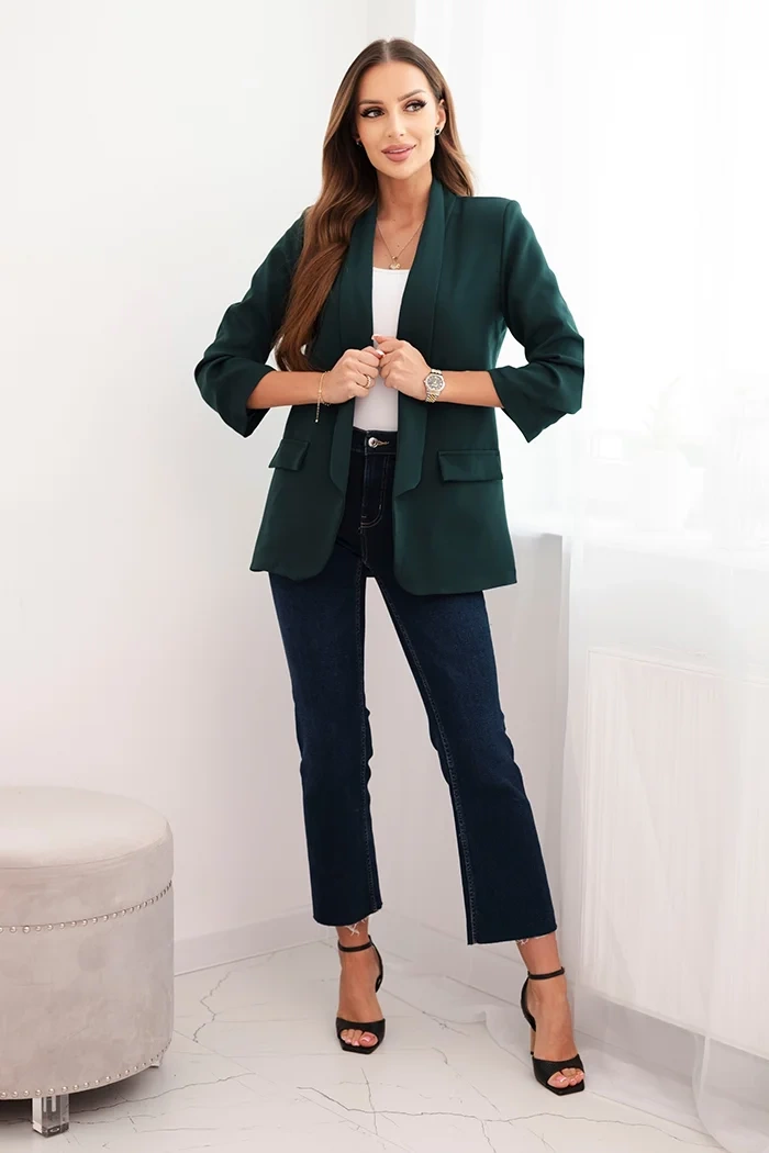 Marynarka damska bez zapięcia z podszewką S/M ciemno zielona to idealny wybór dla kobiet, które cenią ponadczasową modę i komfort noszenia. Model bez zapięcia, z prostym, swobodnym krojem i podszewką, doskonale układa się na sylwetce, dodając lekkości każdej stylizacji. Krótszy rękaw oraz długość sięgająca bioder czynią ją idealną zarówno do pracy, jak i na co dzień.